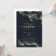 Esta invitación de recepción de boda con salpicadura de oro en acuarela es perfecta para una fiesta rústica después de una fuga. El diseño cuenta con salpicaduras de oro pintadas a mano sobre un fondo azul oscuro. Las tarjetas de RSVP se venden por separado, o puede agregar los detalles de RSVP en la parte posterior o inferior de la tarjeta.