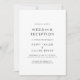 Esta invitación de recepción de boda con tipografía chic es perfecta para una fiesta moderna después de una fuga. El diseño simple presenta tipografía clásica minimalista en negro y blanco con un toque rústico bohemio. Personalizable en cualquier color. Mantenga el diseño minimalista y elegante, tal como está, o personalícelo agregando sus propios gráficos y arte. Las tarjetas de RSVP se venden por separado, o puede agregar información de RSVP al reverso de la tarjeta.