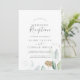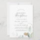 Esta invitación de recepción de boda con verde follaje y hoja de oro es perfecta para una fiesta moderna después de la fuga. El diseño botánico elegante cuenta con eucalipto ligero y aéreo de acuarela acentuado con hojas caprichosas de purpurina dorada. Las tarjetas de RSVP se venden por separado, o puede agregar información de RSVP en el reverso de la tarjeta.
