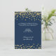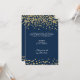 Diseño elegante de recepción de boda (solo recepción) con motivo de confeti de purpurina dorada falsa azul marino, nombres y fecha personalizados. Impresiona a tus familiares y amigos con este diseño moderno y elegante.