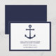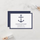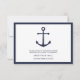 Esta tarjeta de recepción presenta una ilustración de ancla azul marino y detalles en estilo de fuente sans serif moderna en azul marino con borde azul marino sobre fondo blanco.