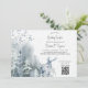 Invitación de recepción de boda de invierno solo acuarela bosque de nieve, hojas delicadas y ciervos. El diseño tiene una paleta de colores de azul polvoriento, azul pizarra, gris azulado y blanco. Está personalizado en letra manuscrita moderna y tipografía clásica elegante. Perfecto para la temporada de invierno, boda de vacaciones o boda de Navidad. Por favor, explore mi colección Bosque de nieve para encontrar artículos coincidentes o envíeme un mensaje para crear las plantillas que necesite.