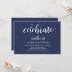 Celebra con nosotros, tarjeta de invitación de boda de escape. Esta tarjeta de invitación temática de boda de escape de azul marino rústico (puedes personalizar todos los colores) es perfecta para la recepción de tu boda y la fiesta de celebración después de la boda. Agrega tus detalles en la fuente / letra coincidente. #TeeshaDerrick #zazzle #bodaescape #azulmarino