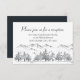 Haga saber a sus invitados dónde se llevará a cabo su recepción con esta encantadora tarjeta de anuncio de recepción de boda con montañas nevadas, árboles y ciervos dibujados a mano.