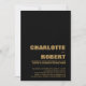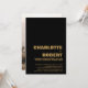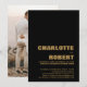 Invita a tus amigos y familiares con esta elegante invitación de recepción de boda minimalista negra con texto dorado que incluye una foto de los recién casados en el dorso para compartir tu alegría en tu matrimonio reciente. Para obtener los mejores resultados al ajustar la imagen elegida para el dorso de la invitación, recórtala a una proporción de 5 x 7.