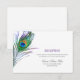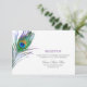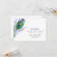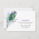 Tarjeta de recepción de boda elegante de pluma de pavo real acuarela.