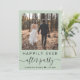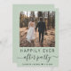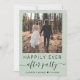 Elegante elegancia verde sabio o invitación boda privada y invitación a la recepción nupcial todo en uno. La parte delantera incluye tu foto, "Feliz eterno después del Fiesta" en una mezcla de tipografía simple y un guión de moda con toques, y tus nombres y la fecha de boda o recepción se unen con un corazón. Al dorso, personaliza tus detalles, ingresa la dirección de tu sitio web boda para crear un código QR para que los invitados puedan escanear tus fotos bodas, todos los detalles y a RSVP en línea, y agrega tus nombres en un guión tipo firma.