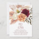Invitación de recepción de boda de terracota floral bohemio elegante y moderna con flores de acuarela adorables y hierba de pampas.