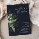 Diseñamos esta invitación de recepción de boda de color azul marino oscuro con vegetación y hoja dorada para completar su recepción boho simple pero elegante. Cuenta con moderno follaje de helecho y hoja de eucalipto verde y blanco, una flor suculenta y hojas mínimas de pan de oro. Estos elementos dan el toque de un bosque encantado de acuarela caprichoso, perfecto para cualquier boda rústica y bohemio. Siéntase libre de personalizar y hacerlo suyo; también, siéntase libre de mirar el resto de la colección para encontrar productos que coincidan y coordinen.