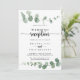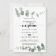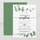 Esta invitación de recepción de boda de eucalipto verde delicia es perfecta para una fiesta moderna después de la fuga. El diseño cuenta con ramas y hojas de eucalipto botánico elegante dibujado a mano con acuarela.