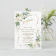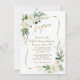 Diseño de tarjeta elegante con vegetación ligera en acuarela, flores blancas y crema, marco dorado falso, sobre fondo blanco. Utilice la herramienta Personalizar para agregar su información. Para artículos coincidentes, visite mi Colección de Flores de Marfil Blanco.