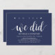 oh sí, lo hicimos, tarjeta de invitación de recepción de boda elopement. Esta tarjeta de invitación temática de boda elopement azul marino rústico (puedes personalizar todos los colores) es perfecta para tu recepción de boda y fiesta de celebración post-boda. Agrega tus detalles en fuente / letra coincidente.