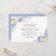 Hermoso conjunto de invitaciones florales de acuarela en azul polvoriento y amarillo suave. Nuestra invitación de recepción es adecuada para aquellas parejas recién casadas que se han escapado, han tenido una ceremonia privada, una ceremonia en el juzgado, etc. y todavía quieren celebrar con amigos y familiares. Vea la colección completa haciendo clic en el enlace directamente debajo de la imagen principal.