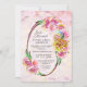 Una elegante invitación de boda ovalada recién casada, rústica y floral de acuarela rosa.