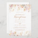 Esta invitación de bienvenida de boda floral y salvaje es perfecta para un fiesta rústico post-salida. El diseño se compone de flores silvestres rosas, rubias, praderas amarillas y pampas marrones, que se organizan en un frondoso y encantador ramo floral, evocando la belleza natural. Las tarjetas RSVP se venden por separado, o puede ver los detalles de RSVP en la parte posterior o inferior de la tarjeta.