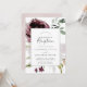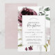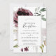 Esta invitación de recepción de boda de romance floral es perfecta para una elegante fiesta después de la fuga. El diseño moderno boho rústico cuenta con flores románticas de acuarela en tonos suaves de burgundy, malva, rosa y blanco crema con hojas verdes. Las tarjetas de RSVP se venden por separado, o puede agregar información de RSVP al dorso de la tarjeta.