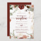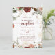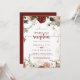 Esta invitación dorada rústica y colorida a la boda floral es perfecta para un simple fiesta postsalida. El diseño se compone de marsala pintada a mano, flores rosas, rubias, borgoñas y doradas con hojas verdes dispuestas en hermosas coronas. Las tarjetas RSVP se venden por separado, o puede ver los detalles de RSVP en la parte posterior o inferior de la tarjeta.