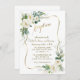 Tarjeta elegante con diseño de vegetación ligera en acuarela, flores blancas y crema, marco dorado falso, sobre fondo blanco. Utilice la herramienta Personalizar para agregar su información. Para artículos coincidentes, visite mi Colección de Flores de Marfil Blanco.