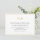 Invitación solo para recepción de boda elegante y formal con un diseño simple con el monograma de tus dos iniciales en dorado falso, dentro de un borde, sobre un fondo blanco. La parte trasera tiene tu foto favorita. Esta invitación clásica solo para recepción es perfecta para parejas que ya están casadas y quieren celebrar con amigos y familiares después de haberse escapado.