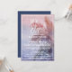 Esta tarjeta de recepción de boda secreta de puesta de sol tropical es perfecta para una fiesta de destino o de playa después de la boda secreta. El diseño presenta una impresionante puesta de sol en acuarela rosa, púrpura y azul con una palmera ondeando en la brisa. Las tarjetas de RSVP se venden por separado.