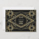 Diseño de tarjeta elegante y vintage con un estilo art déco sofisticado de falso oro, ornamentos de flor de lis real. Utilice la herramienta Personalizar para agregar su información. Para artículos coincidentes, visite mi colección Gran Gatsby dorada y negra romántica.