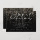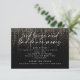 Recepción de Boda | Recepción Moderna Abstracta de Boda Después de la Fiesta - Champán atrevido y moderno en una guirnalda negra brillante que cae en cascada por la página, en caligrafía manuscrita es "comida, bebida y movimientos de baile malos" - el resto del texto es simple y limpio - todo sobre un fondo negro. Papelería de boda divertida, desenfadada y con estilo.
