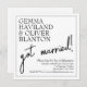 La elegancia de una hermosa tipografía serif se contrasta con la escritura a mano casual que dice "¡se casaron!" en este anuncio y invitación de recepción de boda 2 en 1. Utilice los campos de la plantilla para agregar sus propios detalles y siéntase libre de cambiar los colores, las fuentes, el diseño de la manera que le parezca adecuada.