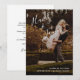 Invitación solo para recepción de boda moderna con un diseño simple con sus nombres en una elegante escritura a mano en la parte superior izquierda y los detalles de su fuga en alineación a la derecha en la parte inferior derecha, sobre su foto favorita. La parte posterior tiene los detalles de su fiesta de recepción en negro sobre fondo blanco. La elegante caligrafía a mano añade un toque romántico a este diseño minimalista. Esta invitación de recepción es ideal si ya está casado y quiere celebrar con familiares y amigos.