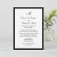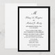 Estas elegantes invitaciones de recepción post boda, aunque asequibles, presentan un fondo blanco para los detalles de su boda que aparecerán en negro. El diseño está realzado por un pequeño borde negro alrededor del borde. Esta invitación de recepción post boda es simple, elegante y económica -- ¡qué gran combinación! Copyright bargainsbyhenis