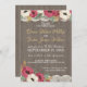 Madera de granero y encaje, invitación de recepción de boda rústica floral borgoña para una barbacoa de "Te Amo" o recepción casual.