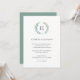 Invitación exclusiva para recepción de boda rústica y elegante con su monograma dentro de una guirnalda de vegetación pintada con acuarela verde sobre un fondo blanco. Esta invitación de recepción botánica moderna es perfecta para una pareja que quiere celebrar con familiares y amigos después de estar casados.