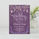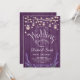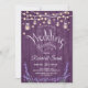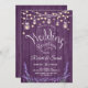 Invitación de recepción de boda. Diseño de estilo rústico con madera púrpura, flores de lavanda y luces de hadas con frascos de mason.