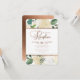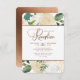 Aguamarina Granja Flores Rústicas País Acuarela Diseño exuberante de flores con follaje, enredaderas, hojas, y acentos de lámina de cobre. Colores suaves y sutiles de marfil, blanco, rosa y amarillo mantequilla. Un estilo rústico y elegante perfecto para una boda de primavera, verano u otoño en su hogar, granja o lugar de evento en un granero. Un estilo clásico y desvencijado de flores románticas combinado con fuentes de letra divertidas y caprichosas y serif. - Invitación de recepción de boda.