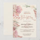 Invitación de recepción de boda de palma boho con caligrafía elegante, hojas de palma secas de moda, rayos de sol y flores. Este es un diseño de acuarela en colores cálidos de tierra como rosa polvoriento, arcilla de terracota, ladrillo, siena quemada y arena. La parte posterior de la tarjeta tiene un lavado de acuarela a juego. Diseño boho rústico y chic de moda. Por favor, explore mi tienda para más estilos y artículos coordinados, en la Colección Boho Palm.