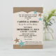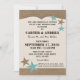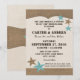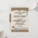 Invitación de estilo rústico campestre a una recepción de boda informal al estilo barbacoa. Diseño inspirado en estrellas occidentales y cuero en tonos cálidos marrones y azules aqua.