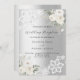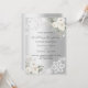 Para un boda elegante y romántico. Un fondo falso plateado decorado con flores blancas de marfil, rosas y encaje blanco. Personalice y agregue sus nombres y detalles.