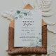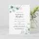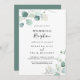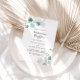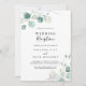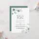 Este verano, la invitación a la boda de bodas de eucalipto verde es perfecta para un fiesta moderno post-partida. El diseño presenta hermosas hojas de eucaliptos verdes de color acuático pintadas a mano que inspiran el encanto natural. Las tarjetas RSVP se venden por separado, o puede ver los detalles de RSVP en la parte posterior o inferior de la tarjeta.