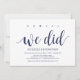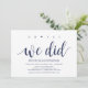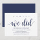 Oh sí, lo hicimos, tarjeta de invitación para recepción de elopamiento de boda. Esta tarjeta de invitación temática de elopamiento de boda rústica en azul marino (puedes personalizar todos los colores) es perfecta para tu recepción de boda y fiesta de celebración post-boda. Agrega tus detalles en fuente / letra coincidente.