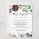 Esta tarjeta de recepción, de color burdeos, floral y verde, es perfecta para un fiesta de postergación en invierno. El elegante diseño de boho cuenta con una marina acuarela, flores color rosa rubor y flores enológicas con detalles artísticos pintados con lápices. Las tarjetas RSVP se venden por separado.