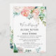 Esta romántica tarjeta de recepción con flores de peón es perfecta para un elegante fiesta postelópico. El diseño floral incluye flores de color rosa, melocotón y acuarela en cascada. Las tarjetas RSVP se venden por separado.