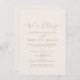 Esta invitación de recepción de elopement de oro y crema delicada es perfecta para una fiesta moderna después del elopement. El diseño minimalista romántico presenta una tipografía amarilla dorada champán elegante y encantadora sobre un fondo de crema marfil con un aspecto limpio y simple. Las tarjetas de RSVP se venden por separado, o puede agregar información de RSVP al dorso de la tarjeta.