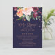 Esta tarjeta de recepción de boda de otoño con flores doradas rosadas es perfecta para una fiesta después de una fuga de la boda en otoño. El diseño presenta un impresionante ramo de flores color rosa, durazno naranja y burgundy marsala con tipografía de lámina dorada rosada falsa y confeti. La parte posterior presenta un arreglo floral coordinado con tipografía de boda hermosa. Las tarjetas de RSVP se venden por separado.