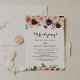 Esta tarjeta de recepción floral de primavera borgoña es perfecta para un simple fiesta postelópico. El diseño está pintado a mano y cuenta con hojas verdes, rosas deslumbrantes rosas, ruidosas, violetas, rojas, blancas y burdeos deslumbrantes, peonías cuidadosamente dispuestas en pequeños ramos adorables. Las tarjetas RSVP se venden por separado.