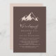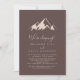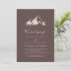 Esta clara tarjeta de recepción para elopement country de montaña es perfecta para un fiesta rústico post-elopement. El diseño presenta una idílica montaña color beige acuático. Las tarjetas RSVP se venden por separado.
