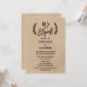 Esta rústica tarjeta de recepción de moda falsa kraft es perfecta para un fiesta de moda. El diseño presenta una divertida tipografía con letras a mano con deliciosos bucles y remolinos rodeados de una sencilla corona de ramas de olivo. Las tarjetas RSVP se venden por separado. Nota: Esto no está impreso en papel kraft real. Es un gráfico de alta calidad hecho para parecer un papel kraft.