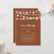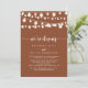 Esta tarjeta de recepción de teracotta elopement se ilumina con una cuerda y es perfecta para un simple fiesta postelopement. El diseño está decorado con bonitas luces de cuerda pintadas a mano en un fondo de terracota. Las tarjetas RSVP se venden por separado.