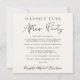 Anuncio de elopement de crema chic y elegante o invitación cuadrada de recepción de boda pequeña. La parte delantera presenta "Fiesta Feliz para Siempre" en una mezcla de tipografía simple y una escritura moderna. Personalice su anuncio e invitación y agregue sus nombres en una escritura similar a una firma. La parte posterior presenta su foto de boda favorita, sus primeros nombres y fecha.