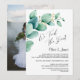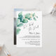 Invite a sus amigos y seres queridos a la recepción después de la boda con esta invitación de hojas de eucalipto verde acuarela para celebrar su matrimonio reciente que incluye una imagen de la feliz pareja en el reverso.
