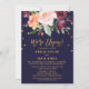 Esta tarjeta de recepción de fuga de la boda floral de otoño es perfecta para una fiesta después de la fuga de la boda en otoño. El diseño presenta un impresionante ramo de flores de color rosa, melocotón naranja y burgundy marsala con tipografía de pan de oro falso y confeti. La parte posterior presenta un arreglo floral coordinado con tipografía de boda hermosa. Las tarjetas de RSVP se venden por separado.