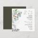 Invitaciones de boda de fuga con vegetación y salvia de eucalipto pintadas a la acuarela. La letra script destaca con una fuente de nombre serif fácil de leer. Fácil de ajustar para las necesidades de su boda.